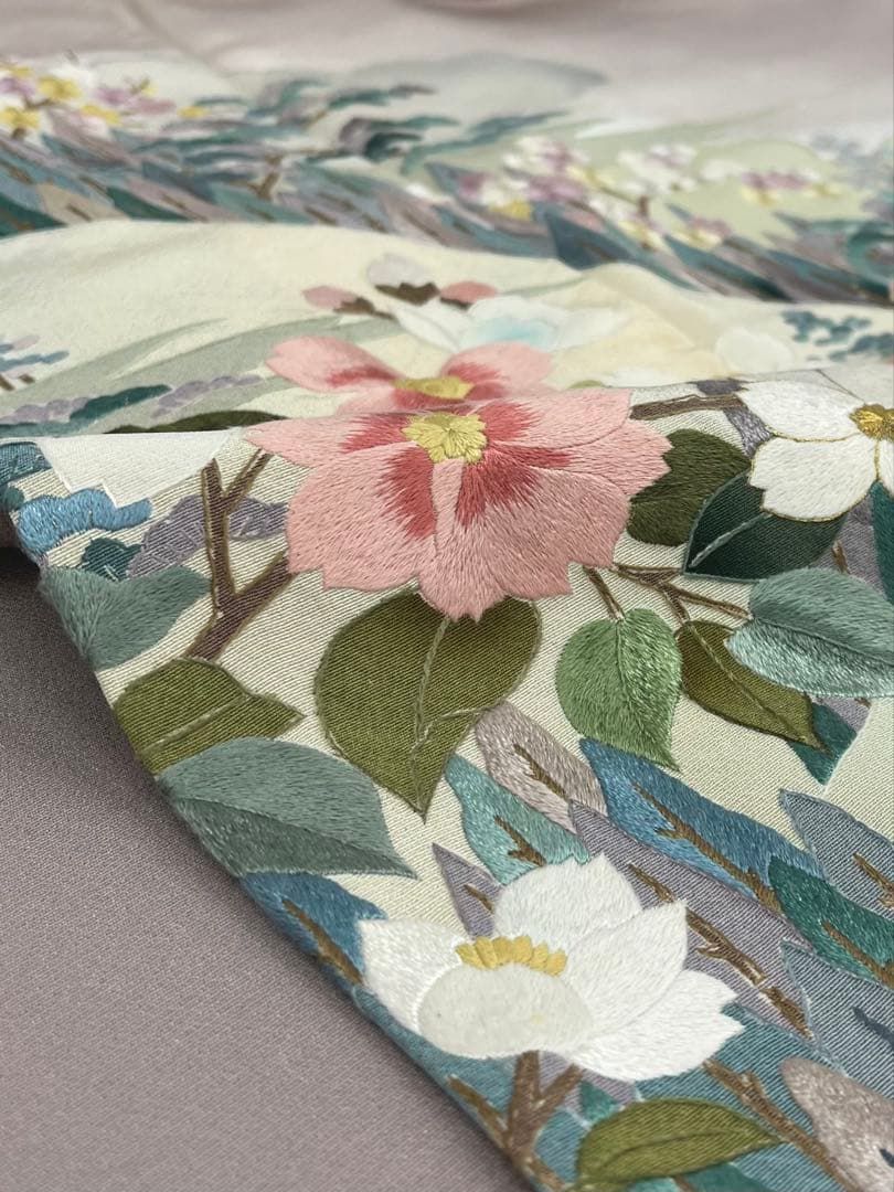 麗光刺繍 蘇州刺繍 落款入 色留袖 一つ紋入 正絹 X449の検索結果