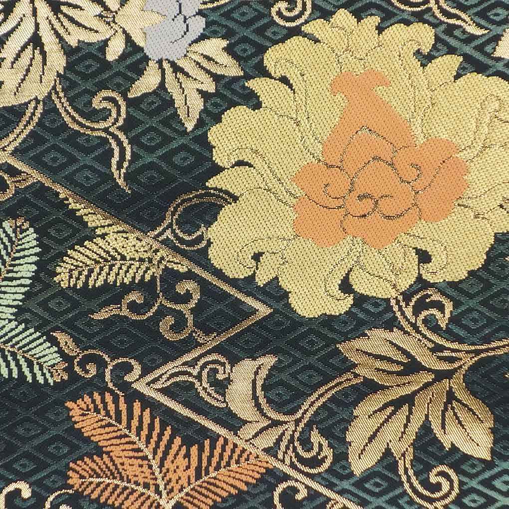 袋帯 幅31cm 長さ435cm レディース 花柄 秋冬春用 正絹 シルク グリーン リメイク リユース リサイクル 呉服のきくや GLOBALQUALITYIMPORTS_COM