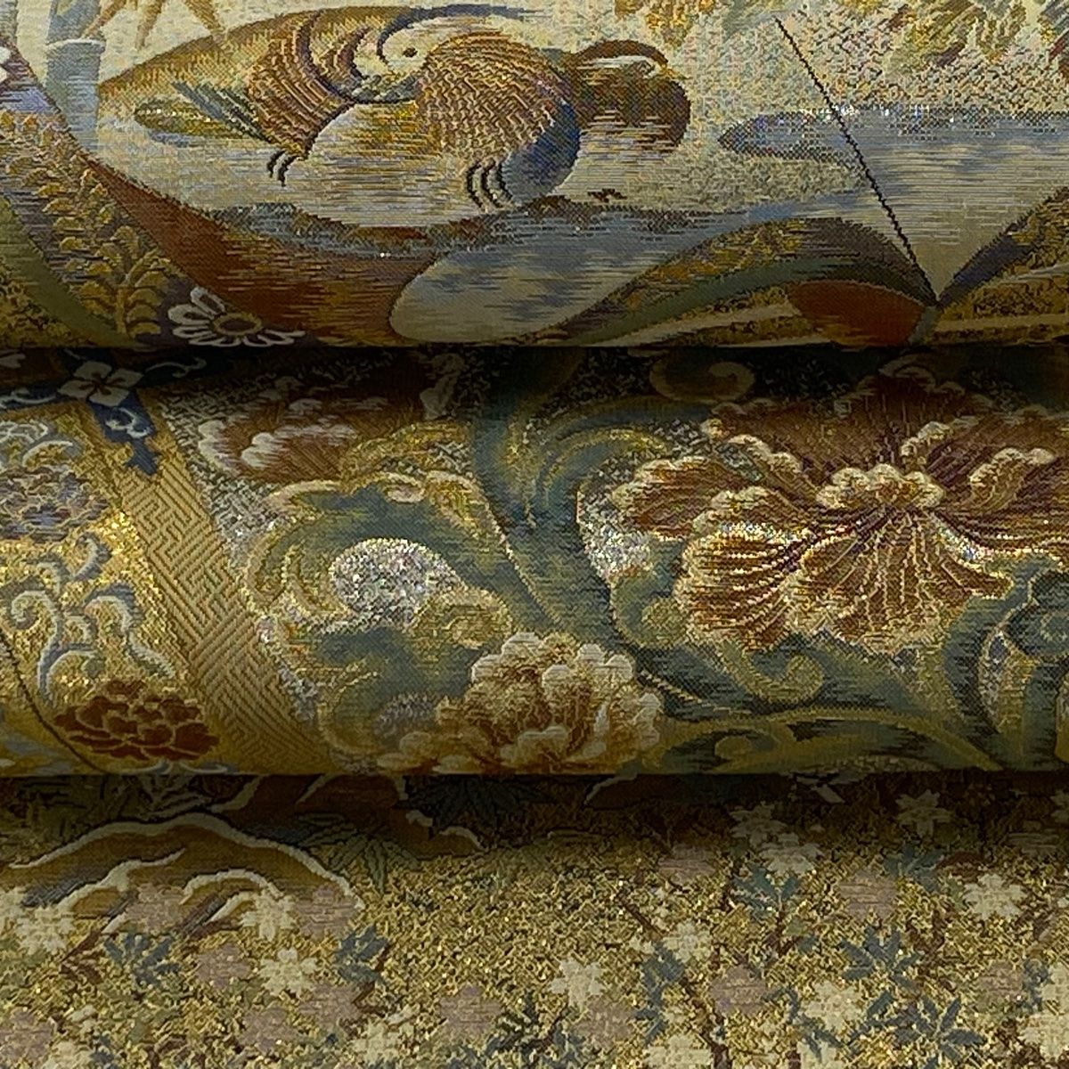 丸帯 温故智新 冊子 花鳥 金糸 箔 金色 全通 正絹 GLOBALQUALITYIMPORTS_COM