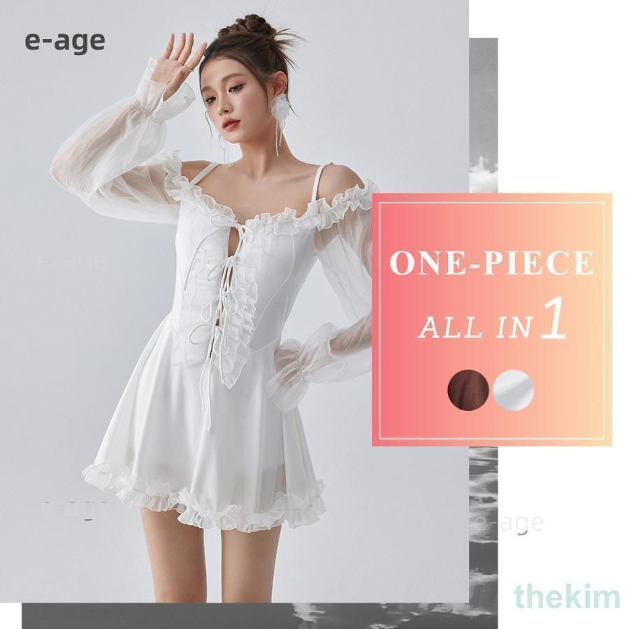 夏 水着 レディース ワンピース オールインワン 体型カバー オフショル フリル 紐 リボン おしゃれ かわいい 白 長袖 キャンディスリーブの検索結果