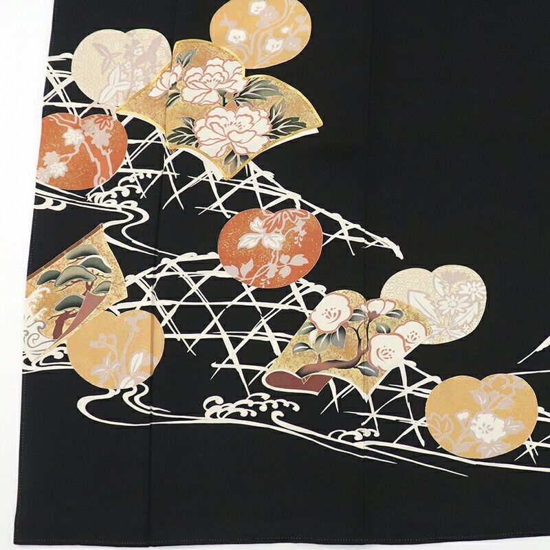 黒留袖 販売 単品 礼装 着物 和装 フォーマル 正絹 黒 丸に横木瓜 冊子文 団扇文 落款 身丈166cm 裄丈66cm 結婚式 母親 M Lサイズ相当 リサイクル着物 リユース着物 着物の検索結果