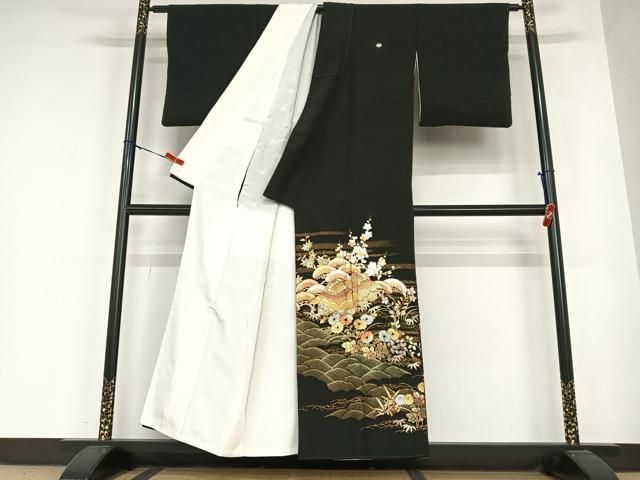 黒留袖 五つ紋 比翼付き 金駒刺繍 金彩 亀甲 菊 宝尽くし 着物 101b d