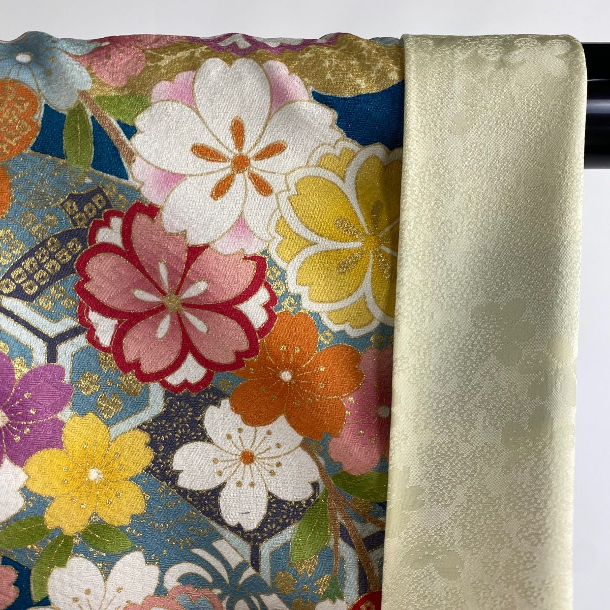 振袖 仮絵羽 JAPAN STYLE 影井ひな 刺繍 正絹 未仕立て品 八掛付き