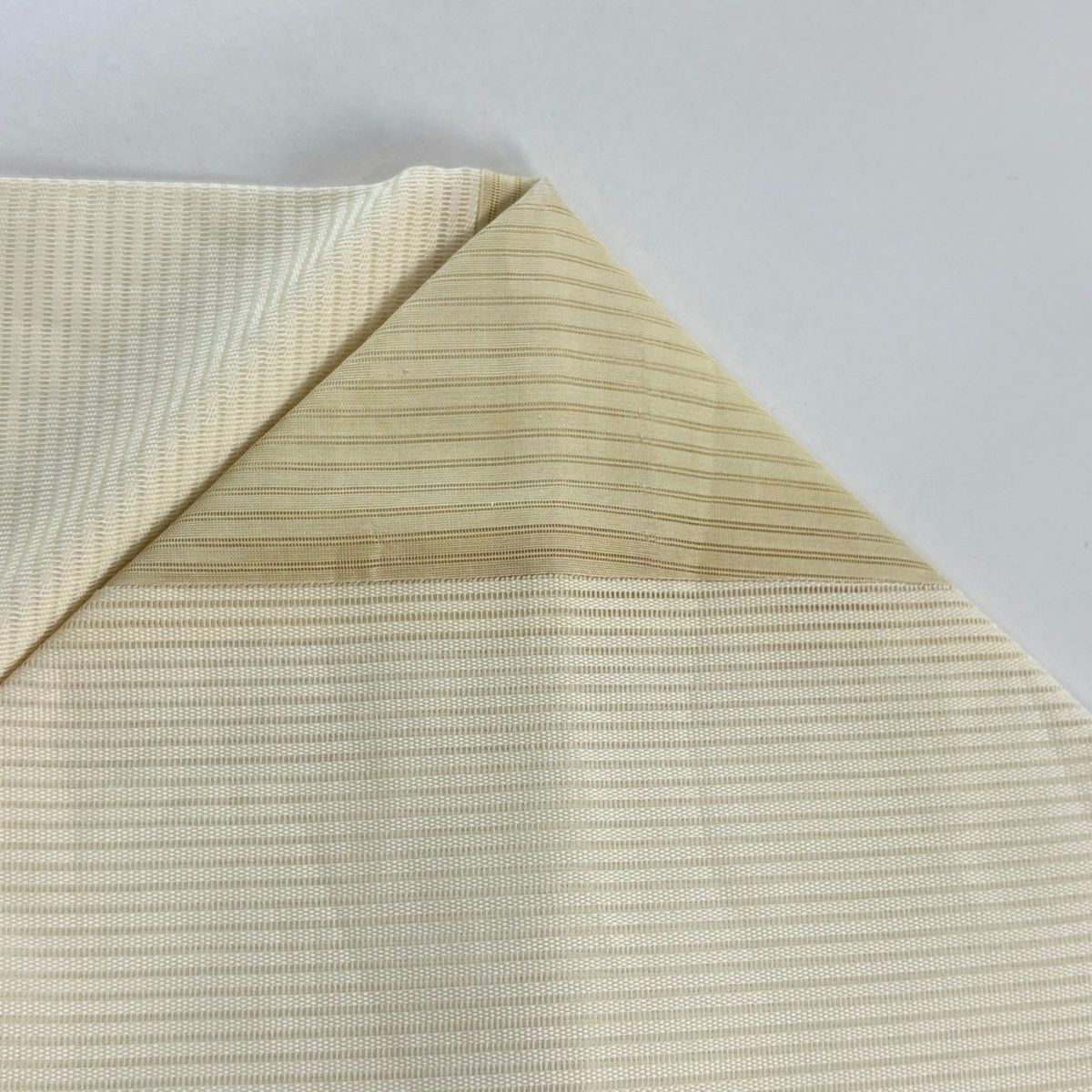 名古屋帯 帯屋捨松 花織 真綿紬 カジュアル 正絹 肌色 ベージュ 横段 仕立て上がり リサイクル 西陣織 お洒落 八寸 No.i6-2348