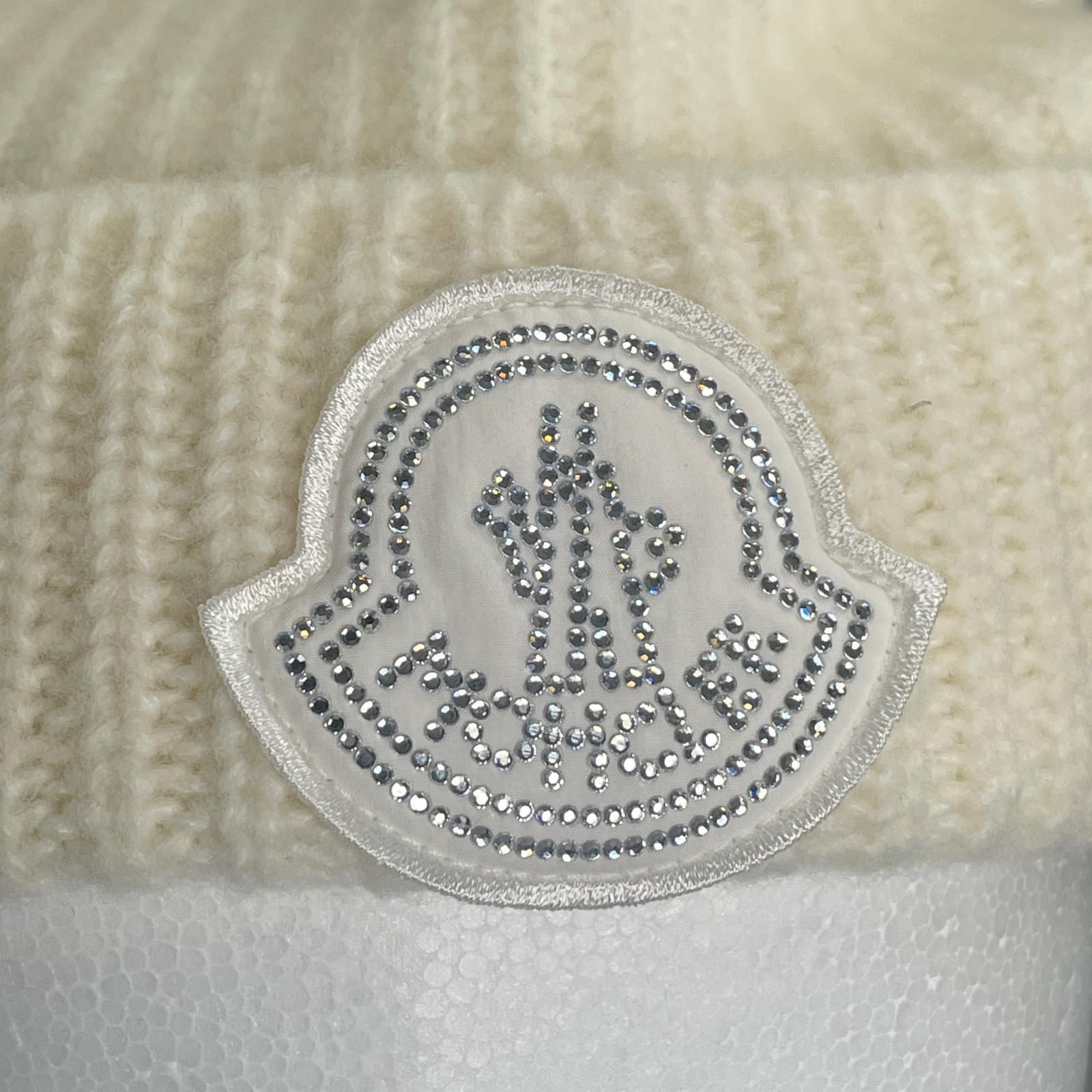 MONCLER モンクレール J20933B00072 BERRETTO ロゴワッペン付き ウール ニットキャップ ホワイト UNI イタリア製 レディース GLOBALQUALITYIMPORTS_COM