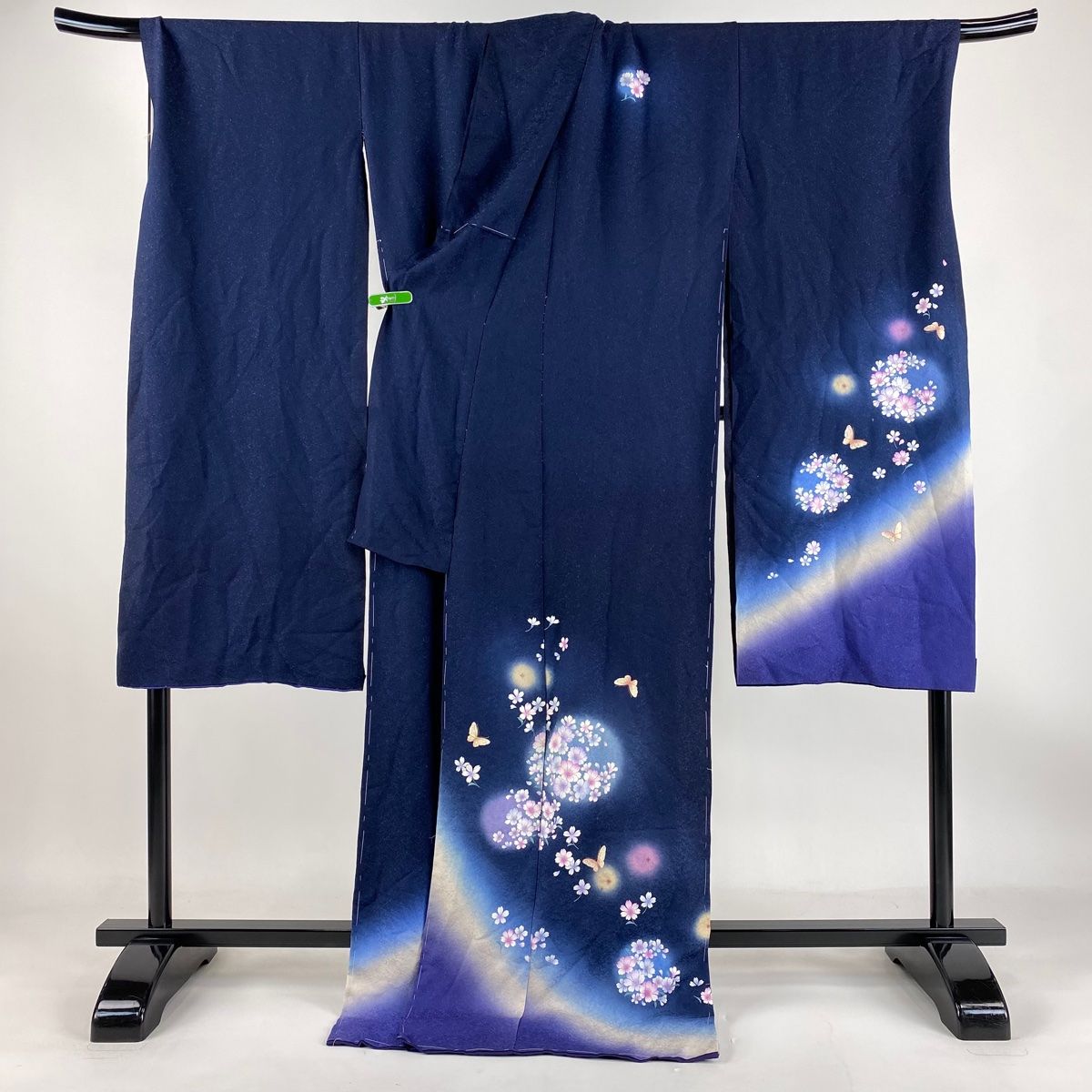 振袖 身丈176cm 裄丈74.5cm 未仕立て 仮絵羽 桜 蝶 銀通し 金彩 濃紺 正絹の検索結果