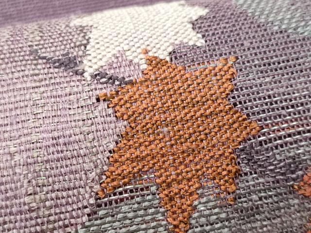 袋帯 秀品 菱 幾何学模様 切嵌め 銀糸 灰色 お太鼓柄 正絹