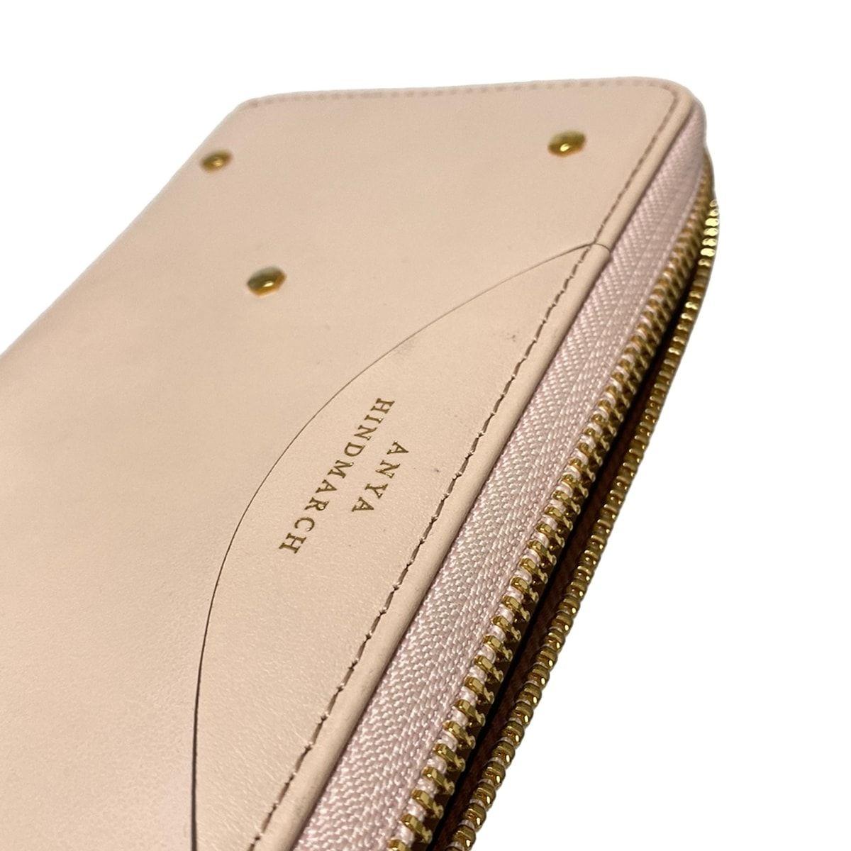 Anya Hindmarch アニヤハインドマーチ 長財布 - ピンクベージュ スタッズ ラウンドファスナー レザー GLOBALQUALITYIMPORTS_COM