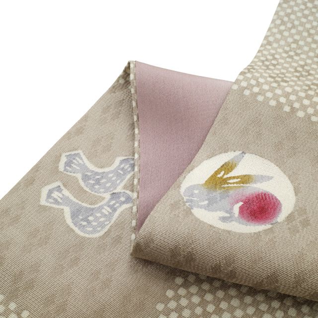 小紋 着物 リサイクル 正絹 草苑 型絵紅型染 松煙染 黒染衣 古代織 1社1技術 手染め グレージュ オフホワイト 市松 動物柄 うさぎ ミミズク 鹿 ハト 鳥 春 秋 冬 仕立て上がり 身丈164 裄丈66.5 Lサイズ みやがわ sb16541 GLOBALQUALITYIMPORTS_COM