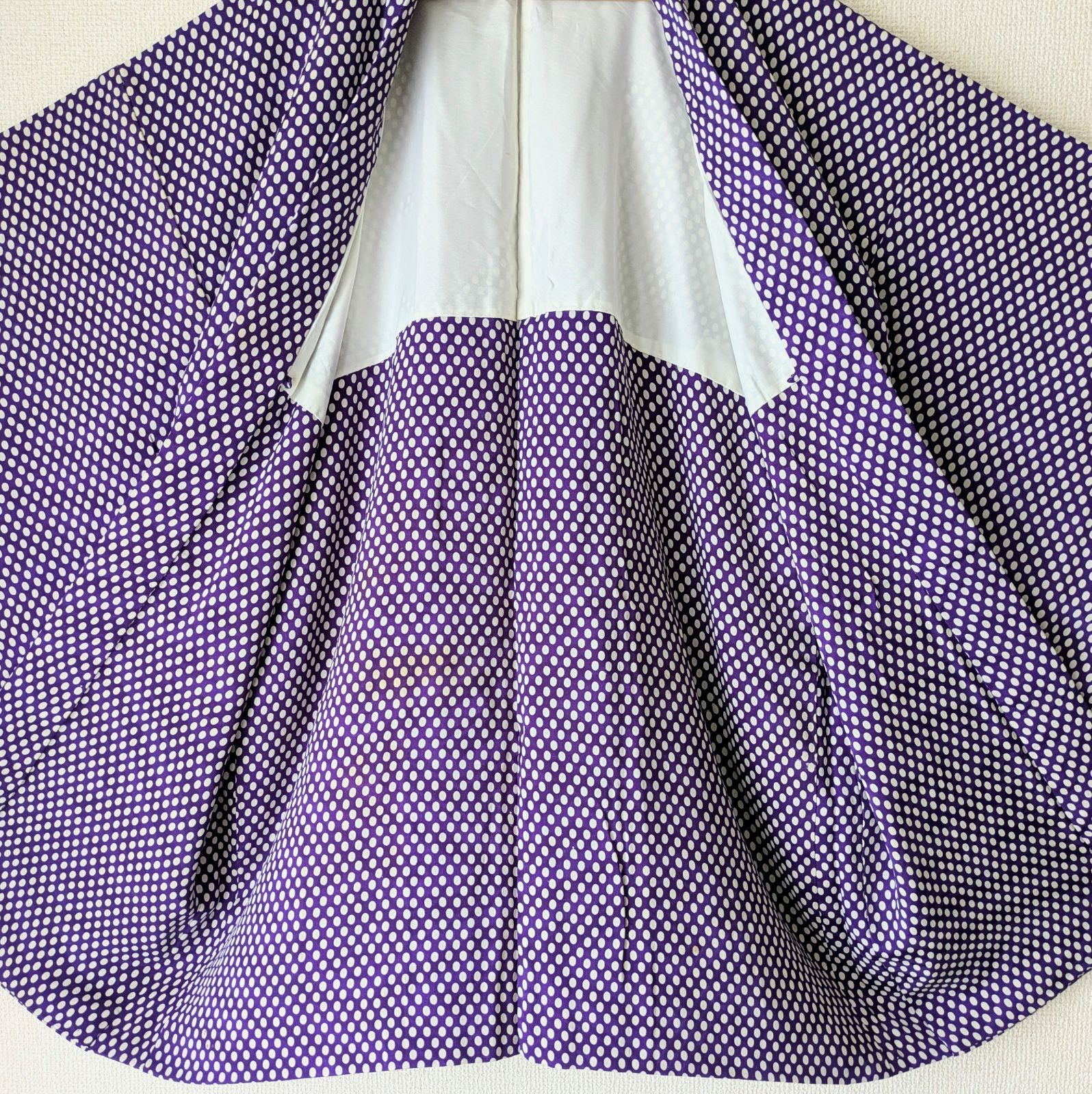 Japanese Vintage Haori Long Purple Polka dots pattern Silk Kimono Jacket Old-ⅽloth 長羽織 羽織 正絹 紫 白 水玉模様 古布 時代布 大正浪漫 和洋折衷の検索結果