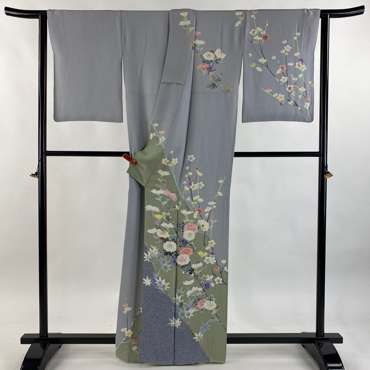 訪問着 身丈162cm 裄丈65cm M 袷 落款 菊 楓 青灰色 正絹の検索結果