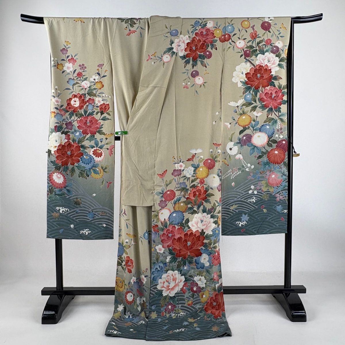 振袖 身丈181.5cm 裄丈69.5cm 未仕立て 仮絵羽 落款 牡丹 波 ぼかし 薄茶色 正絹の検索結果