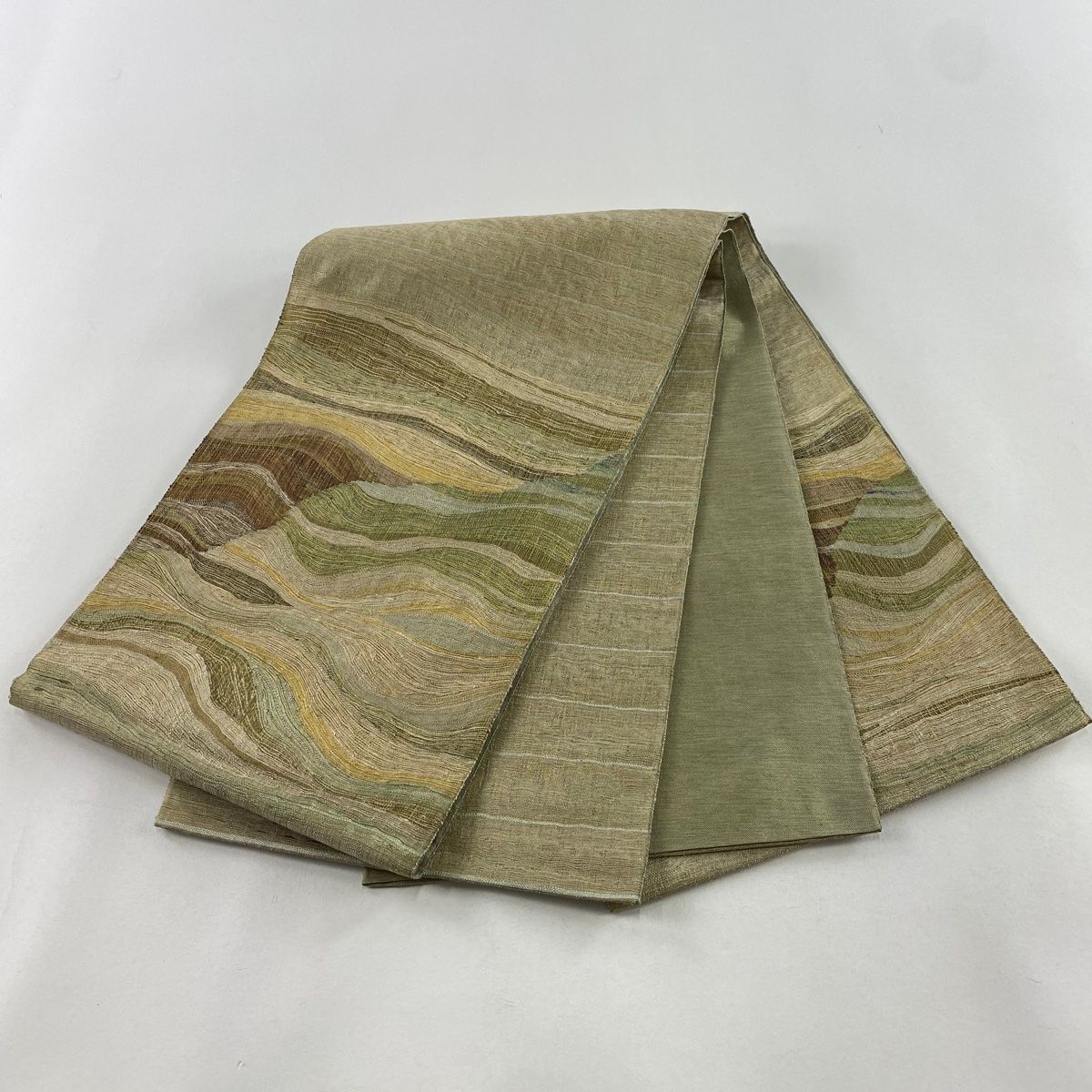 袋帯 秀品 幾何学 金糸 茶緑色 お太鼓柄 正絹 GLOBALQUALITYIMPORTS_COM