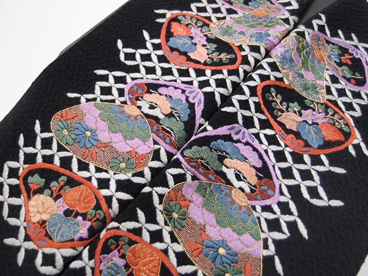 半衿 手刺繍 正絹縮緬 大正ロマン 振袖 黒 現品限り h946の検索結果