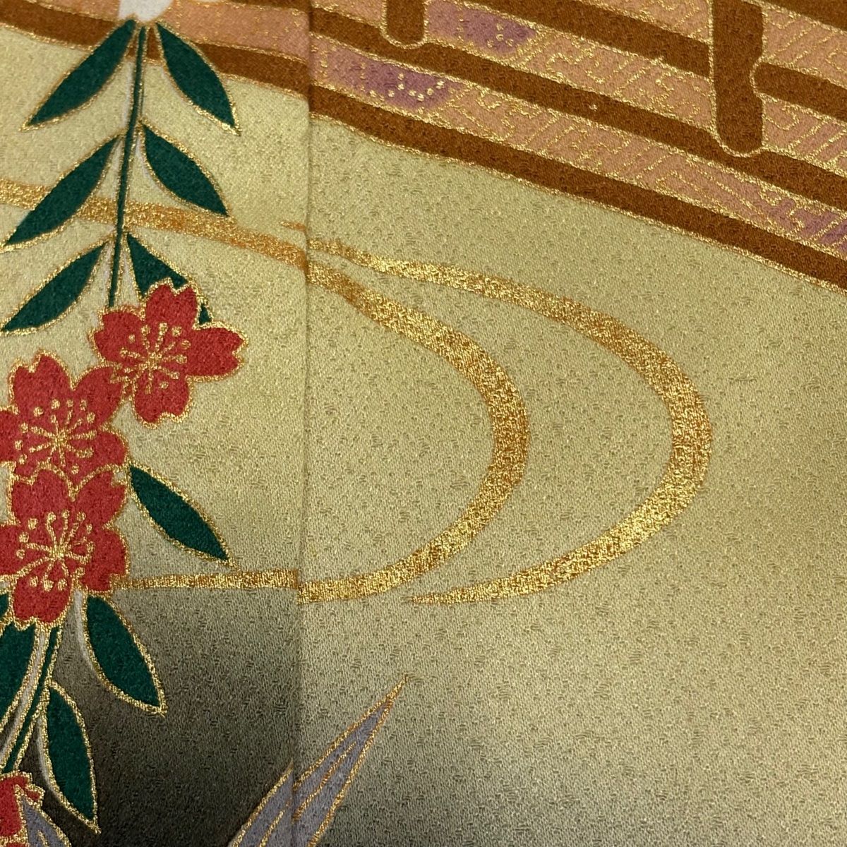振袖 身丈166cm 裄丈67.5cm L 袷 花車 橋 金糸 金彩 鶯色 正絹 秀品の検索結果