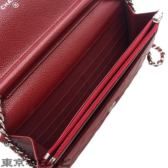 シャネル CHANEL チェーンウォレット A33814 レッド シルバー金具 キャビアスキン チェーンショルダーバッグ マトラッセ 30番台 レディース 101826104 GLOBALQUALITYIMPORTS_COM