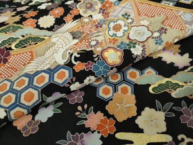 平和屋着物 豪華黒留袖 駒刺繍 吉祥飛鶴草花文 金彩 無落款 正絹 DAAW5676udの検索結果