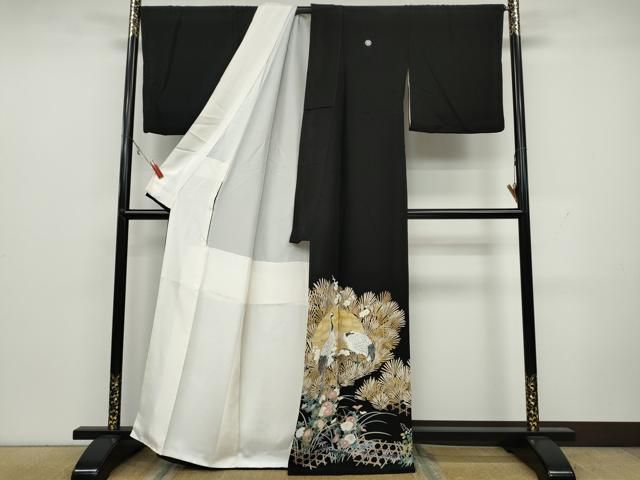 平和屋着物 豪華黒留袖 駒刺繍 飛鶴立波宝尽くし松竹梅花文 金彩 正絹 CAAW7765yc