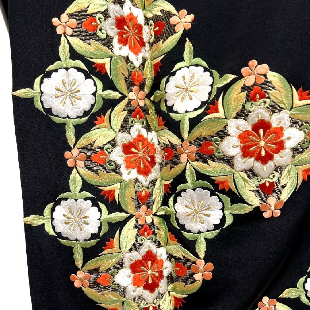 アンティーク 黒留袖 刺繍 相良刺繍 牡丹 菊花 立花 着物 101b p