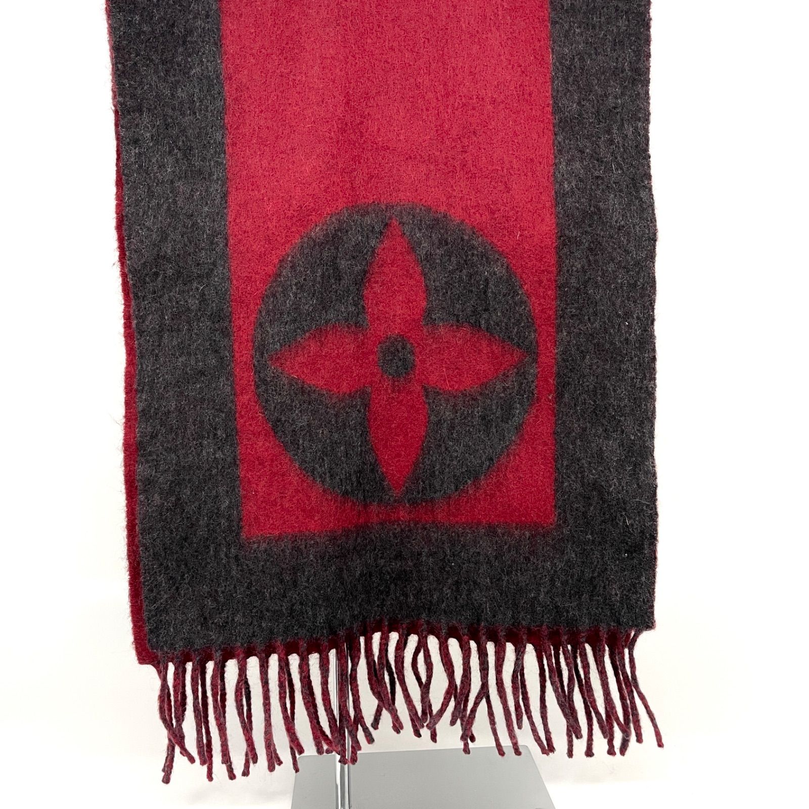 レベル ルイヴィトン エシャルプ カーディフ マフラー ウール アンゴラ 秋冬 男女兼用 ユニセックス レッド×グレー 8211 GLOBALQUALITYIMPORTS_COM