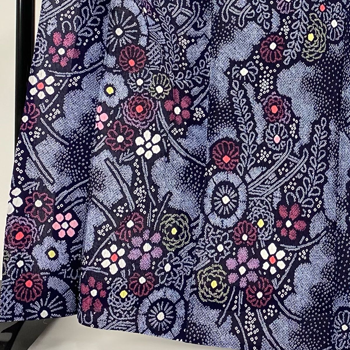 浴衣 身丈166cm 裄丈63.5cm S 絞り浴衣 源氏車 草花 紺色 綿 GLOBALQUALITYIMPORTS_COM