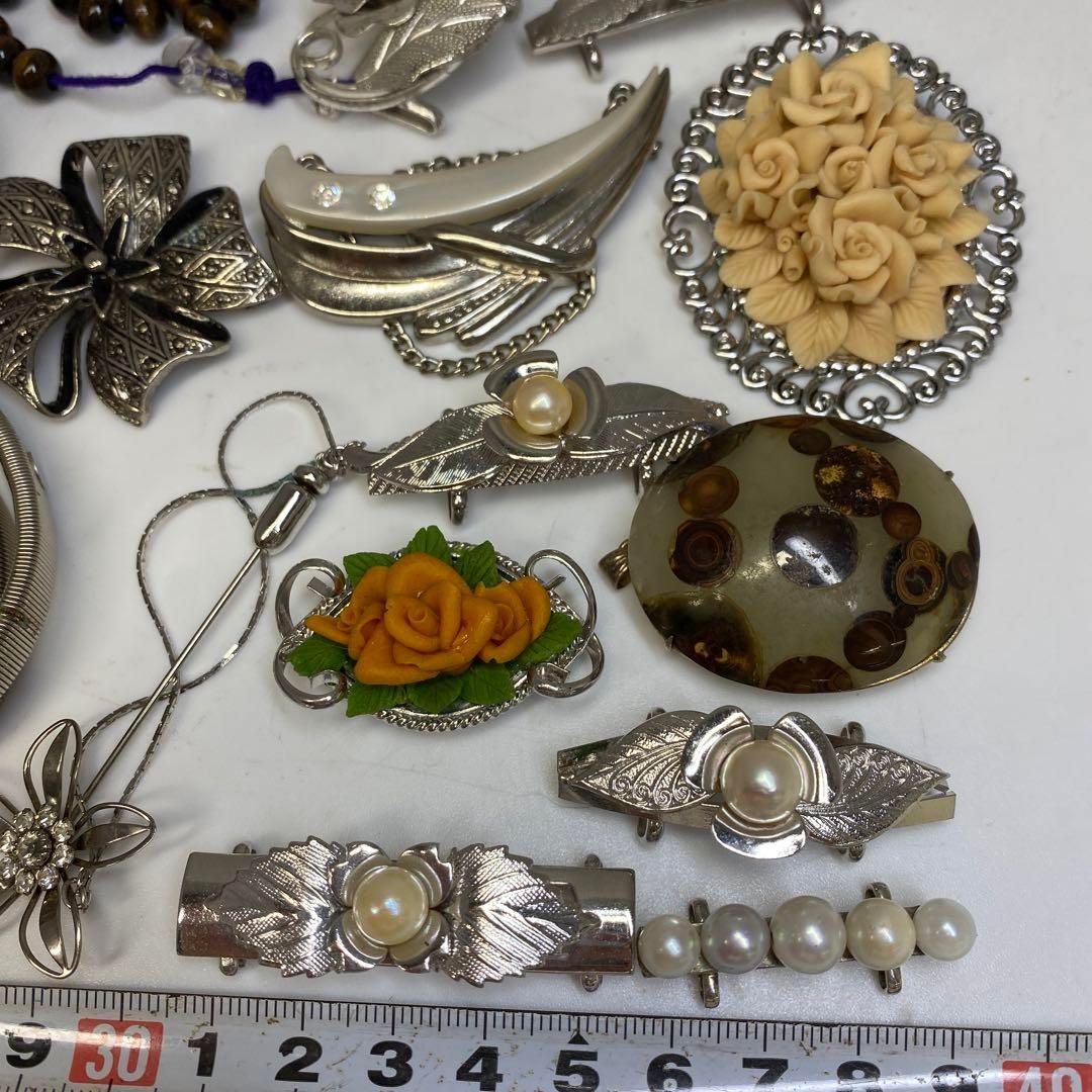 silver刻印 真珠 白蝶貝等帯留等 37g 東Y7-0108ア㉜