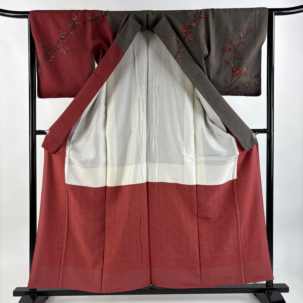 訪問着 身丈157cm 裄丈64cm M 袷 やまと 草花 幾何学 灰茶 正絹 秀品の検索結果