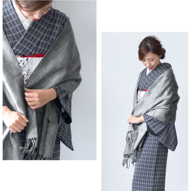 一年中 ショール 全3色 老舗ブランド 奥順謹製 結城紬 ショール ストール 絹100% 和装 洋装 着物 小紋 訪問着 着付け 羽織 着物コート 着物防寒 春 夏 秋 冬 通年 毛皮 着物ショール 道中着 ポンチョ プレゼント IT