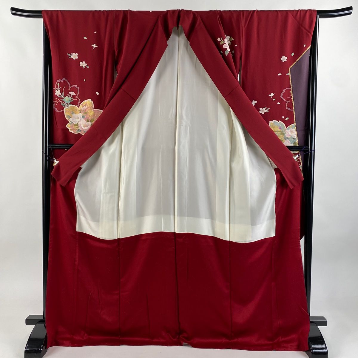 振袖 身丈172cm 裄丈69cm L 袷 椿 桜 箔 金彩 えんじ色 正絹の検索結果