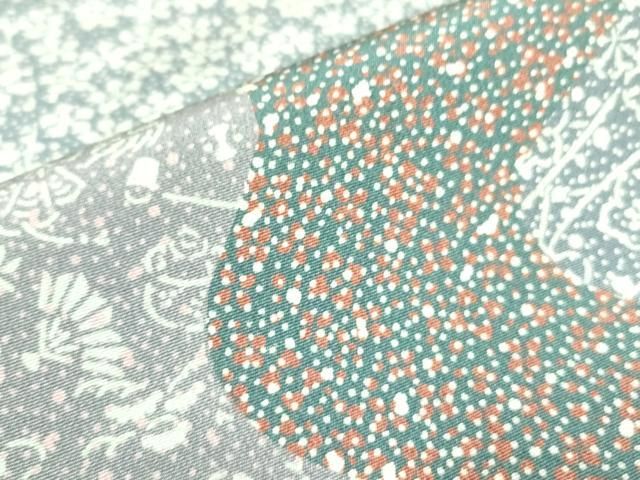 訪問着 身丈161cm 裄丈64cm M 袷 扇面 菊 金彩 染め分け 灰緑 正絹 秀品