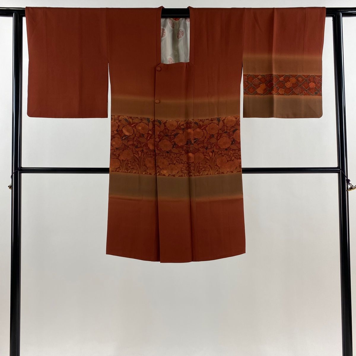 道行 身丈101.5cm 裄丈62.5cm S 和装コート 角衿 草花 ぼかし 赤茶 正絹の検索結果