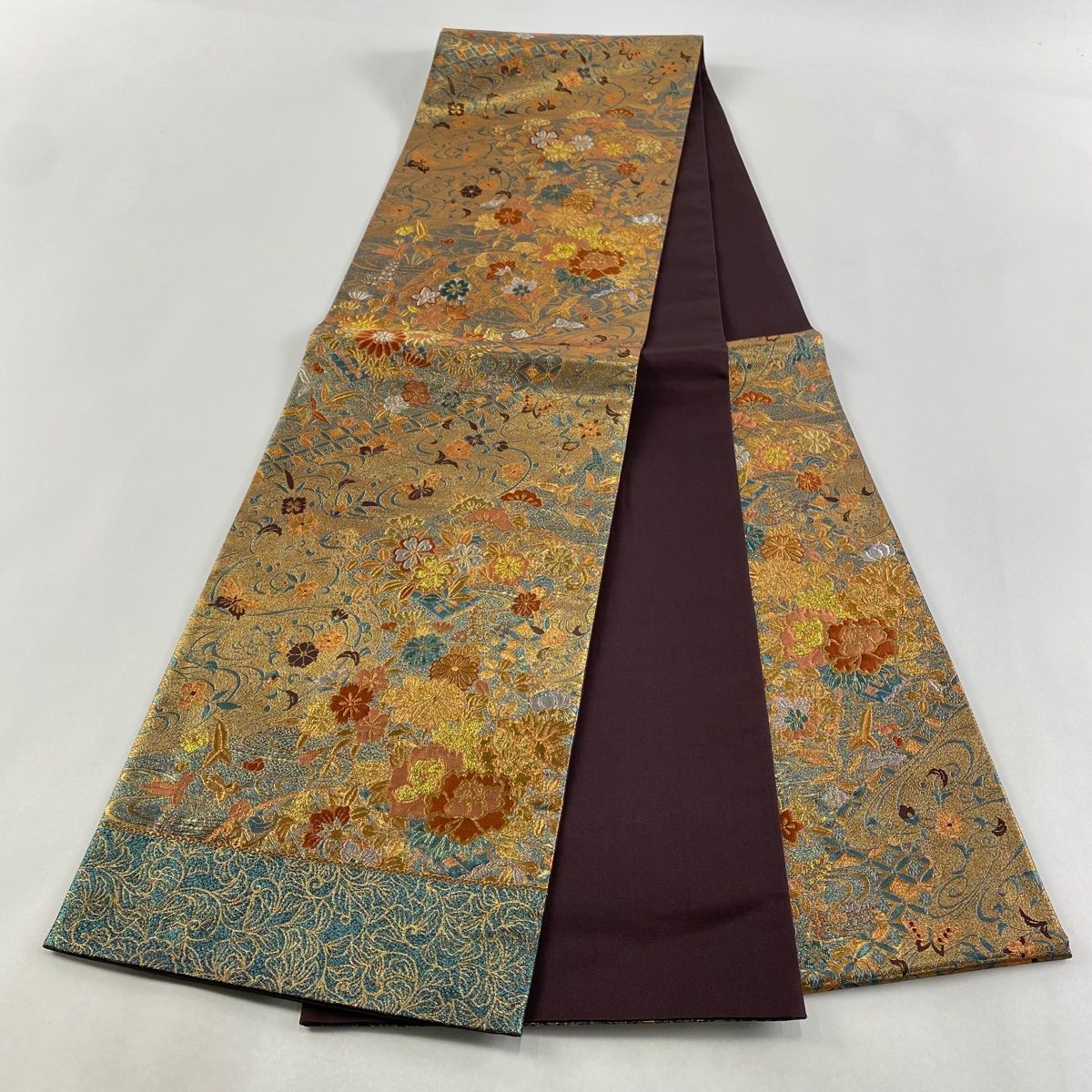 袋帯 秀品 草花 金銀糸 箔 金茶 六通 正絹 GLOBALQUALITYIMPORTS_COM