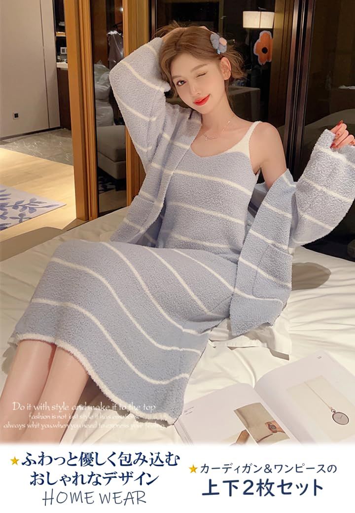 RIRIOA ルームウェア ワンピース パジャマ レディース もこもこ 上下セット カーディガン 2点セットの検索結果
