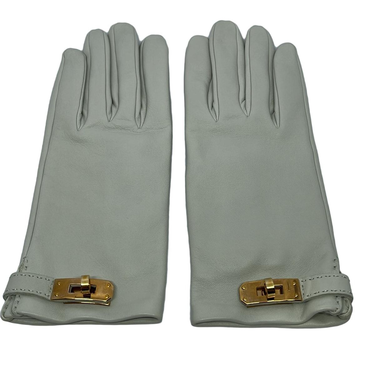 HERMES エルメス 手袋 レディース - ライトグレー ゴールド金具 ケリーチャーム イニシャル刻印 ラムスキン GLOBALQUALITYIMPORTS_COM