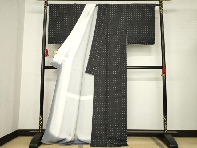 平和屋着物 上質な小紋 格子 黒地 正絹 AABC6144ckの検索結果