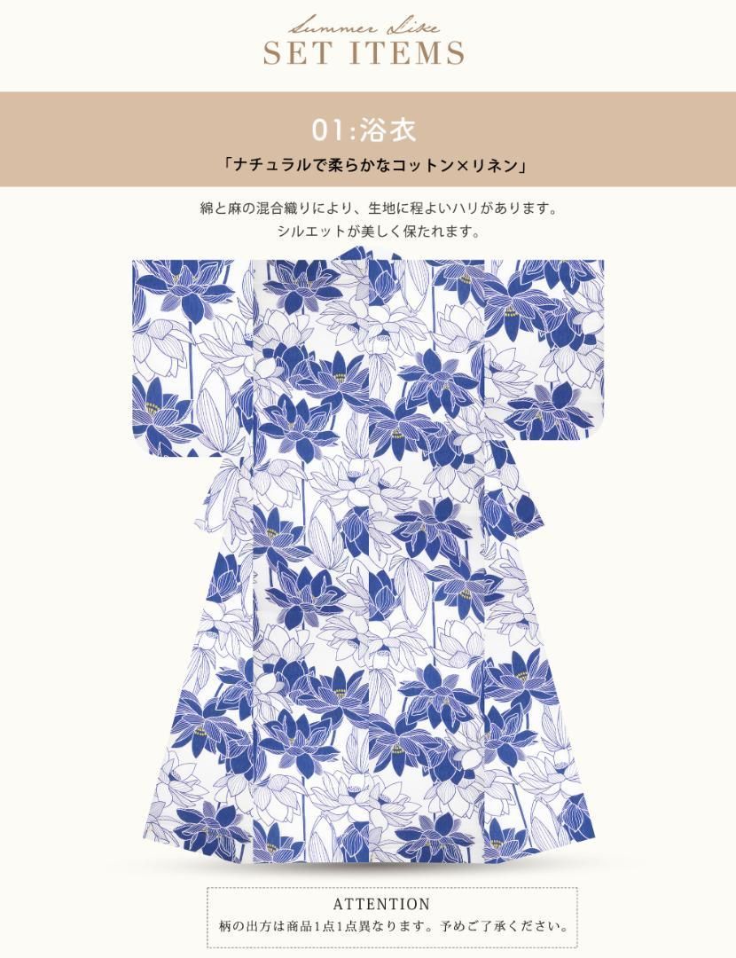 綿麻 浴衣 帯付き 2点セット 白 青 フリーサイズ レディース No.6の検索結果