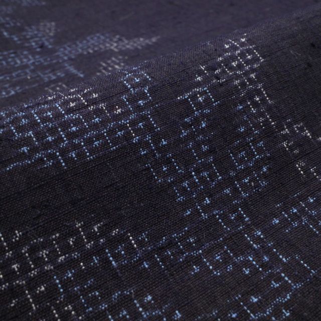 新古品 重要無形文化財 本場結城紬 反物 地機 手織り 正絹 黒紺 ブラックネイビー ダークネイビー 草花柄 80亀甲 結城紬 上 カジュアル 春 秋 冬 未仕立て みやがわ sbs16503 GLOBALQUALITYIMPORTS_COM