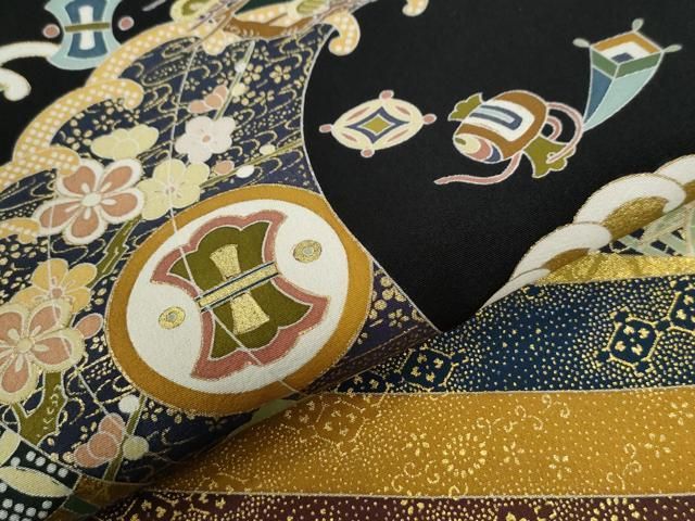 平和屋着物 豪華黒留袖 作家物 駒刺繍 飛鶴菱吉祥花文 金彩 正絹 CAAX5920gh