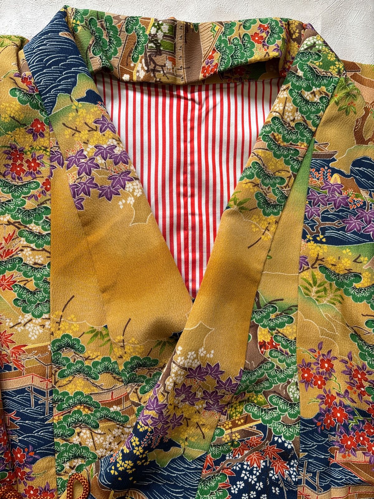 ちりめん 袷道中着 からし系 裄66.5の検索結果