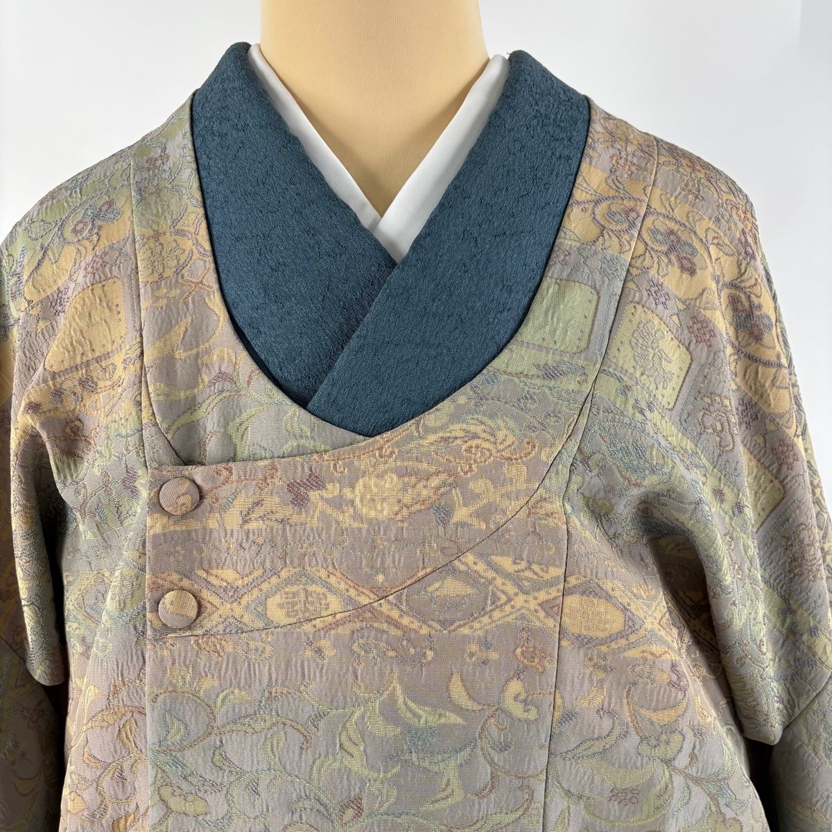 道行 身丈110cm 裄丈66cm M 和装コート 千代田衿 花唐草 段縞 灰色 正絹の検索結果