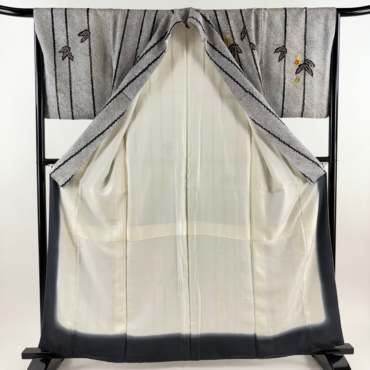 付下げ 身丈161cm 裄丈67cm M 袷 笹 菊 刺繍 総絞り 黒灰 正絹 秀品の検索結果