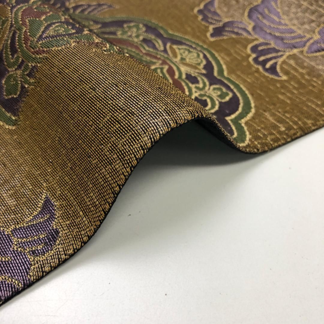 袋帯 落ち着いた色彩の華柄模様 金糸 路考茶色 O-5633 GLOBALQUALITYIMPORTS_COM