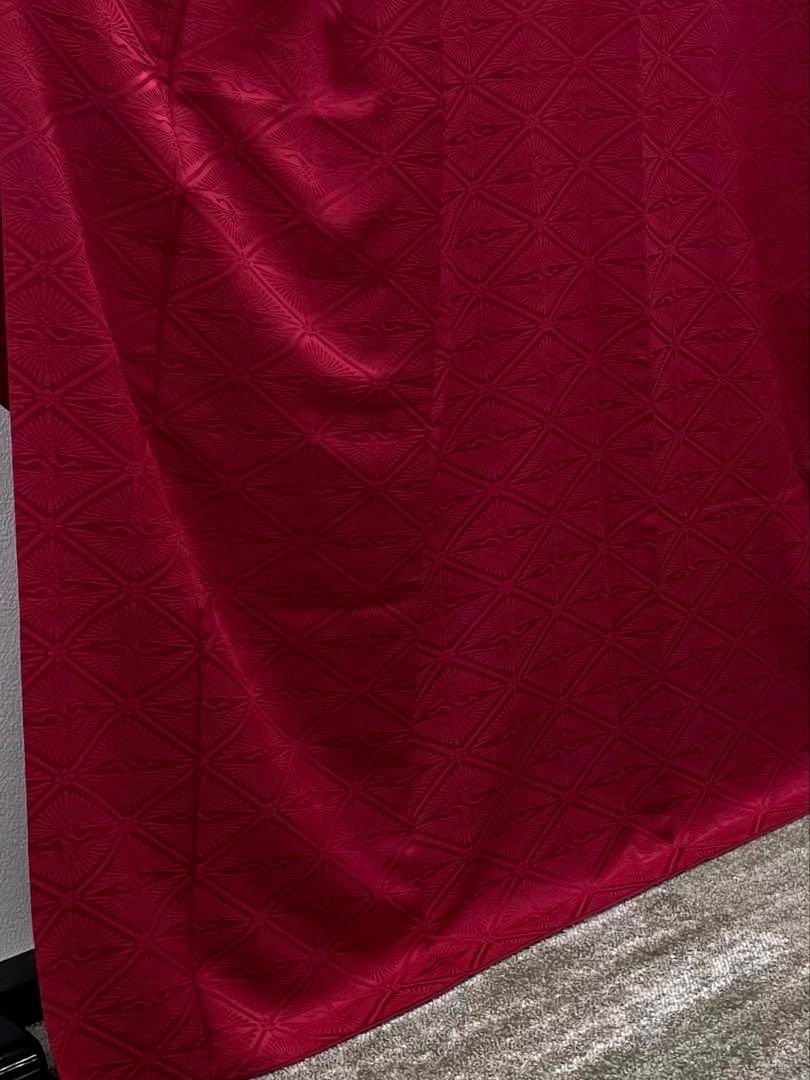 振袖 無地 紋意匠 向かい鶴 鳥 シンプル 重ね衿付 正絹 赤系 GLOBALQUALITYIMPORTS_COM