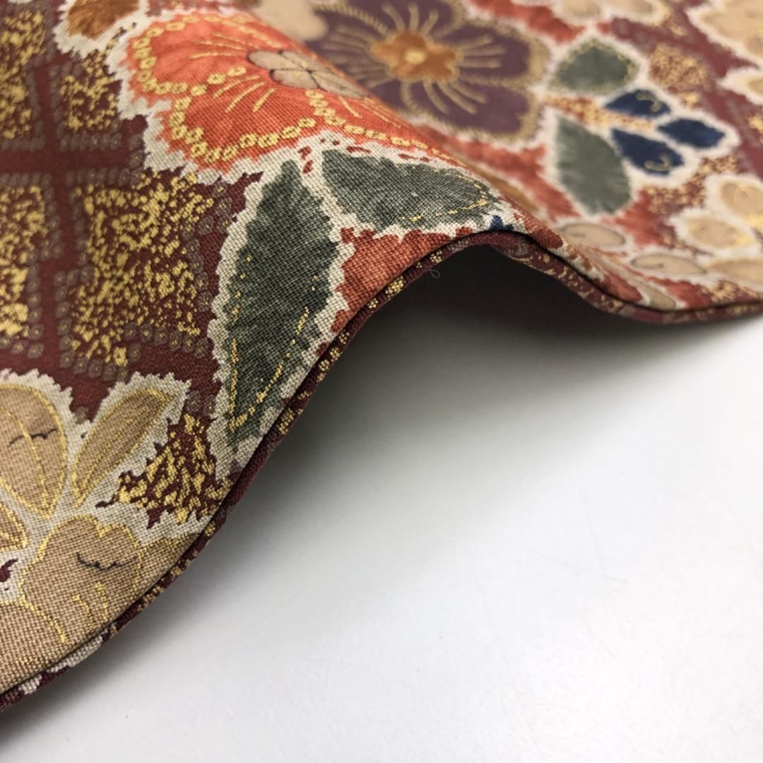名古屋帯 辻が花 金彩 小豆茶色 縮緬 O-5630 GLOBALQUALITYIMPORTS_COM