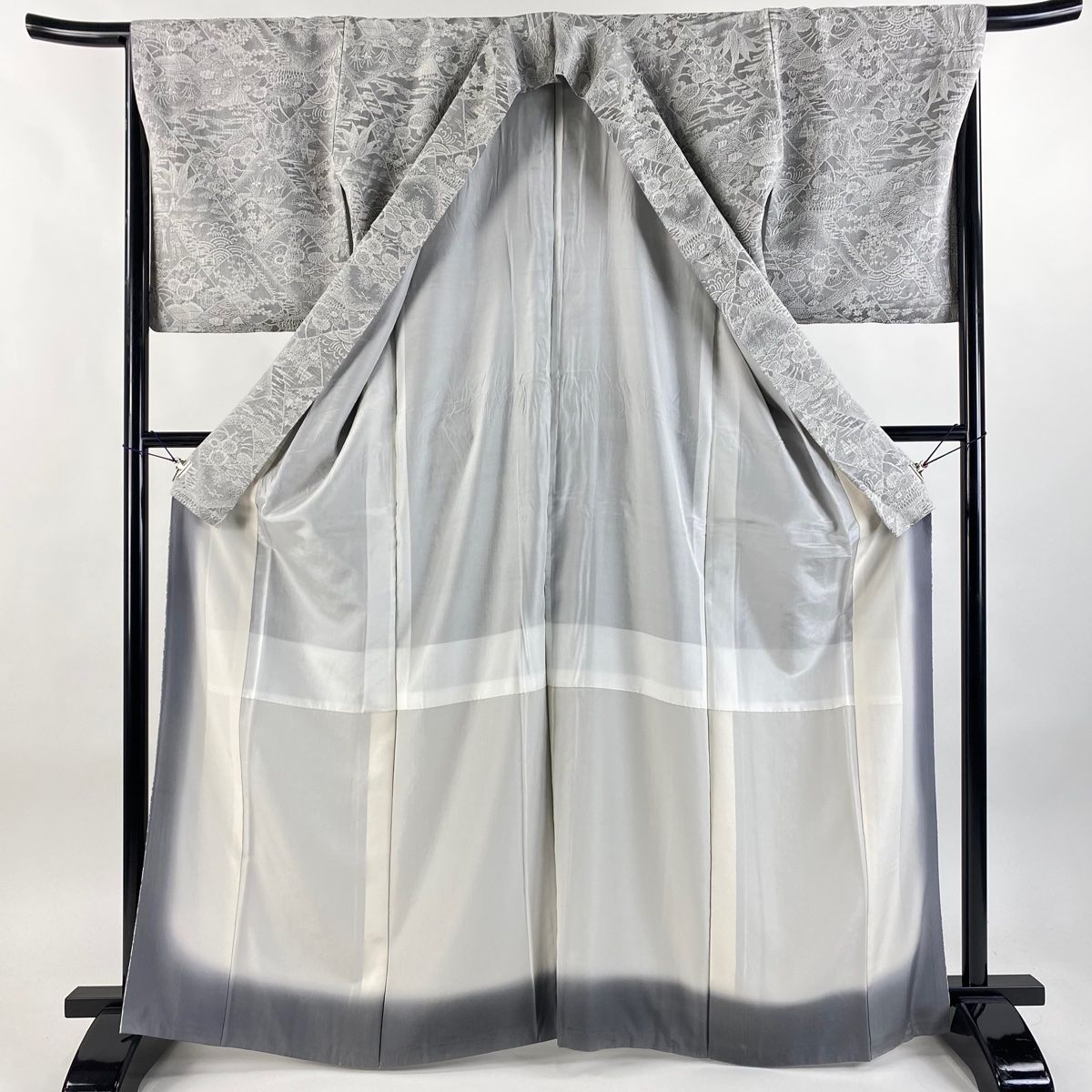 小紋 身丈165cm 裄丈66cm M 袷 草花 鳥 紋意匠 灰色 正絹の検索結果