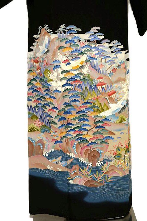 黒留袖 着物 本場加賀友禅作家 稲荷茂雄 鶴 比翼付 身丈153cm 裄62cm クリーニング済 正絹 結婚式 T3640 GLOBALQUALITYIMPORTS_COM