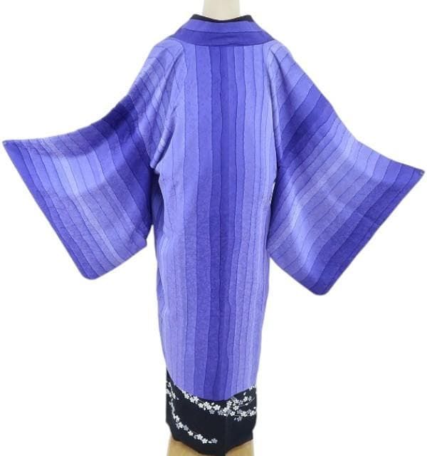 道行 身丈90cm 裄丈68cm L 地紋 ぼかし 灰紫 正絹 秀品