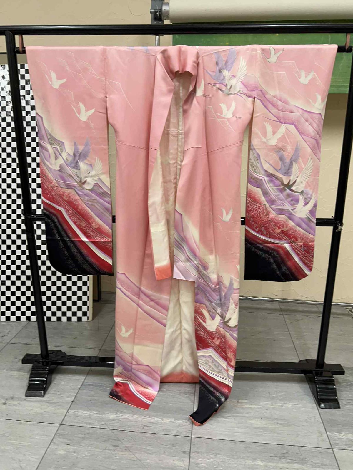 貸衣装処分品 振袖 正絹正絹 ピンク かわいい柄  裄・・・65cm 袖丈・・・107cm 着丈・・・168cm 廻り・・・140cm 帯びの長さ袋帯400cm