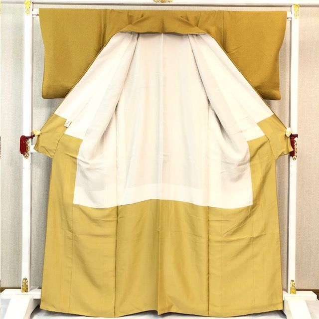 きものキレイ 色無地 袷 金茶色 絹 身丈160㎝ 裄丈65.7㎝ リユース secondhand IR013 GLOBALQUALITYIMPORTS_COM