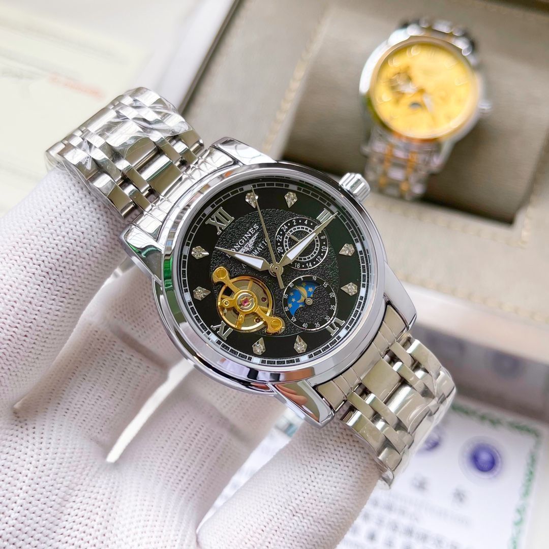 芸術的技術 ロンジン トゥールビヨン メンズ42mm|超薄5.2mm機芯×2WAYベルト|ジュネーブ仕上げ 日月表示| | GLOBALQUALITYIMPORTS_COM